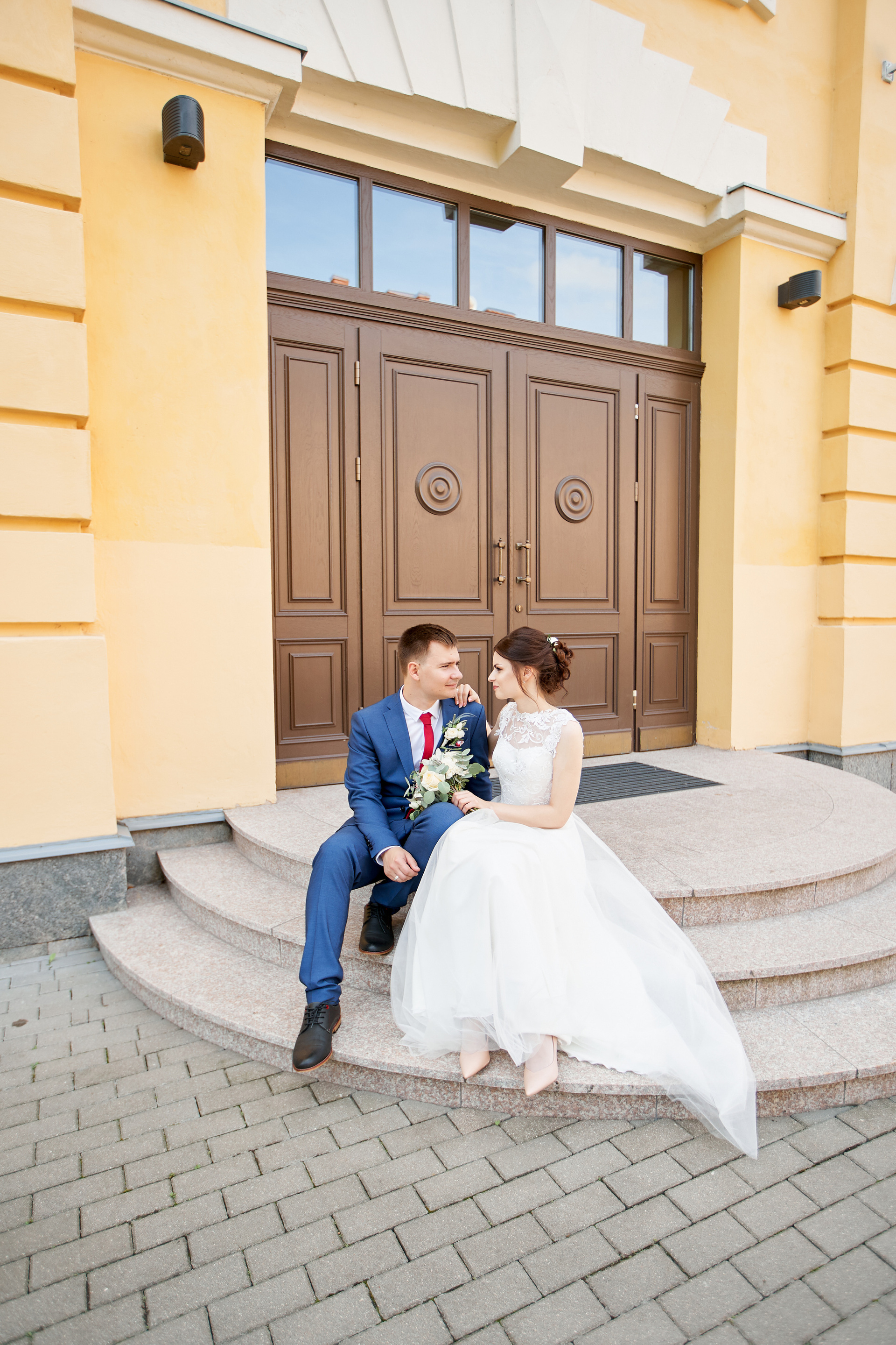 Маленькая свадьба симпатичных ребят. Съёмка началась с церемонии, которую организовали в Арт центре Марко Ротко, фотосессия в крепости и в салоне винтажной мебели «Housevintage»